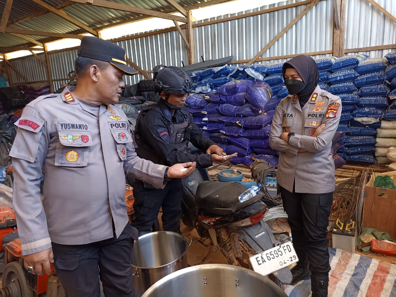 “Gudang ini memang berada di sekitar area tambang. Barang-barang yang semula mencurigakan, seperti plastik hitam yang terbungkus kabel dan selang, setelah diperiksa ternyata tidak mengandung unsur peledak,” tambah Kholid.