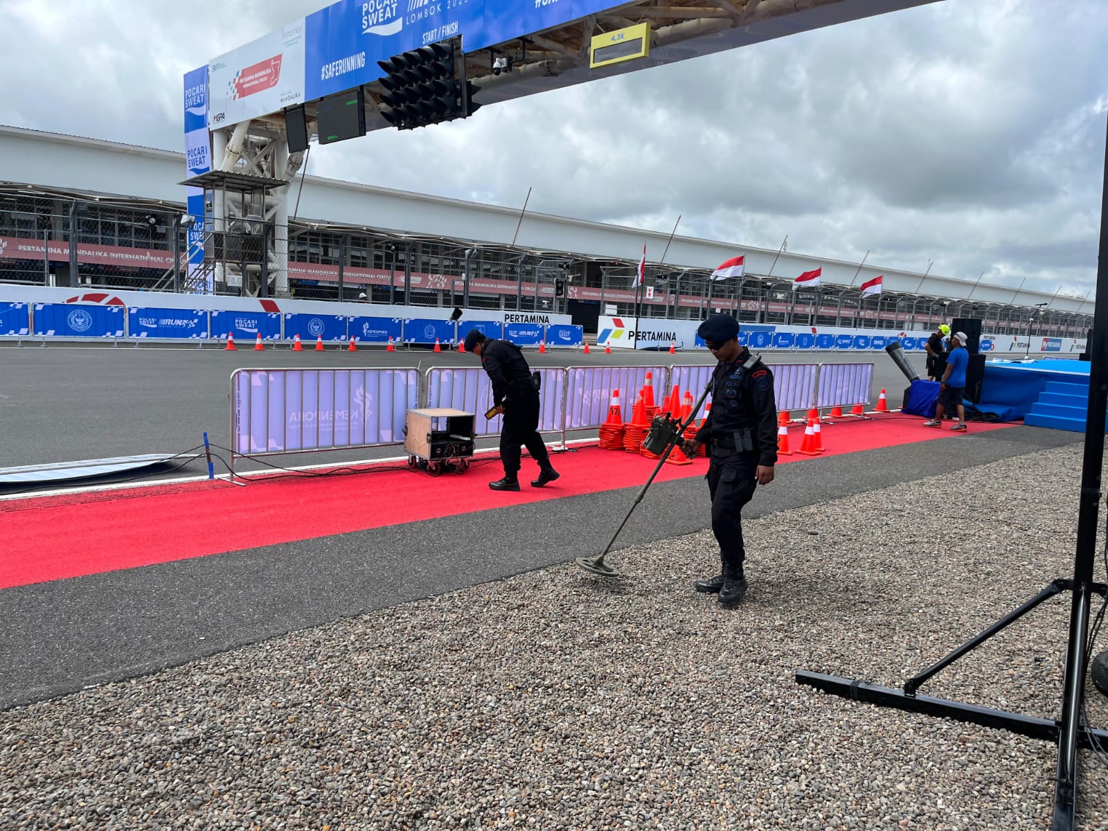 Barbareto News – Menjelang pelaksanaan Pocari Sweet Run di Sirkuit Mandalika, Kabupaten Lombok Tengah, Tim Penjinak Bom (Jibom) Detasemen Gegana Sat Brimob Polda NTB melakukan sterilisasi arena, Sabtu (13/9/2025).